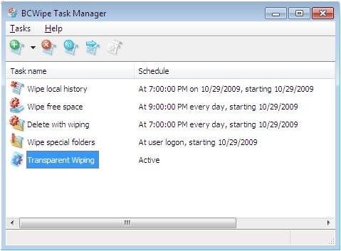 BCWipe includes Task Manager to set