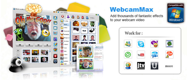 大麥視頻特效WebcamMax可以使用在各種攝像頭軟體上,比如MSN、QQ、UC、Skype等