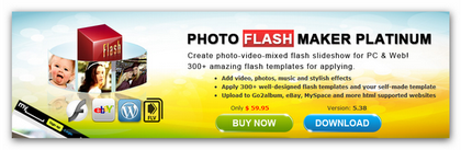 Photo Flash Maker Platinum 是一套 Flash 電子相簿制工具,以 SWF 檔案為輸