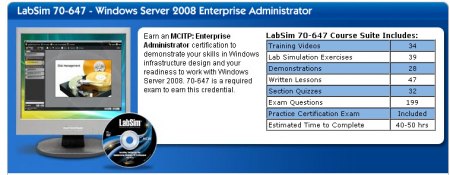 TestOut 推出的培訓課程: LabSim 70-647 Windows Server 2008 EA認證考試