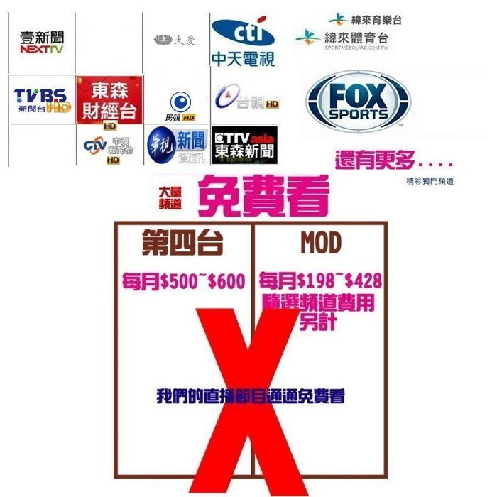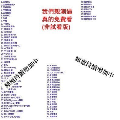 我們提供的是台灣電視直播的頻道(不是試看版)完全免費